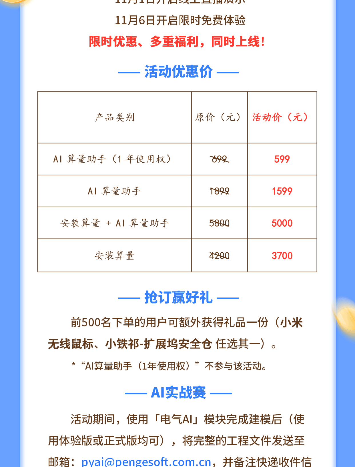 鹏业AI算量助手重磅来袭——限时5折起,45天退款保障
